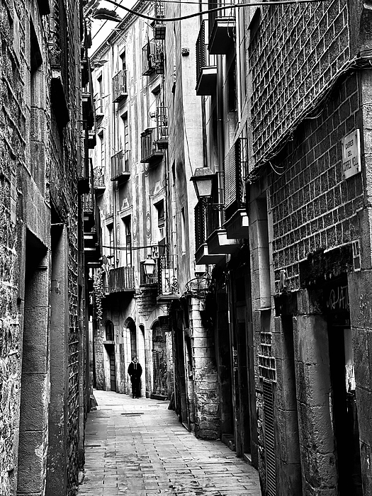 Immerse yourself in the historic soul of Barcelona with this evocative black and white fine art print. Captured in the winding, narrow passages of the Gothic Quarter, this photograph perfectly encapsulates the atmospheric mystery of the Ciutat Vella.